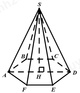 Tính thể tích của hình chóp lục giác đều \(S.ABCDEF\) có cạnh đáy bằng \(2cm\), cạnh bên bằng