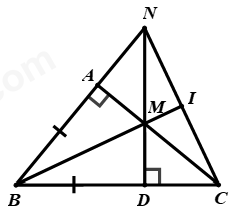 c) Ta sẽ chứng minh: \(\left\{ \begin{array}{l}BI \bot CN\\MI \bot CN\end{array} \right. \Rightarrow B,M,I\) thẳng hàng