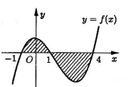 Cho hàm số y = f(x) liên tục trên \(\mathbb{R}\). Gọi S là diện tích hình phẳng giới hạn bởi đồ thị hàm số y = f(x), trục hoành và hai đường thẳng x = -1, x = 4 (như hình vẽ bên dưới). Mệnh đề nào dưới đây là đúng?