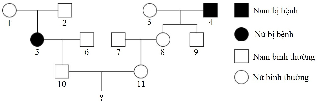 IV. Xác suất cặp vợ chồng (10) - (11) sinh con bị bệnh là \(\dfrac{{11}}{{84}}\).
