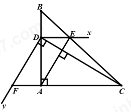 Cho \(\Delta ABC\) vuông tại \(A\). Điểm \(D \in AB\), kẻ \(Dx//AC\) cắt \(BC\) tại \(E\) sao cho \(AE\)
