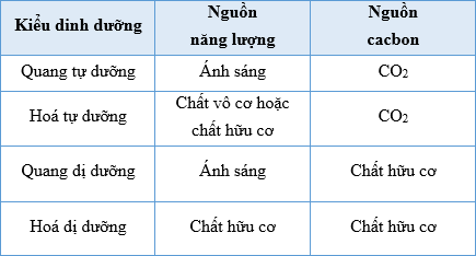 Có mấy kiểu dinh dưỡng của vi sinh vật:
