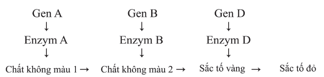 Ở một loài hoa, xét ba cặp gen phân li độc lập, các gen quy định các enzym khác nhau cùng tham gia