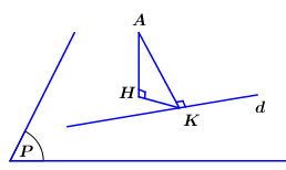 Gọi H, K lần lượt là hình chiếu vuông góc của A lên (P) và đường thẳng d. Chứng minh \(d{\left( {A;\left( P \right)} \right)_{\max }} = AK\) \( \Leftrightarrow H \equiv K\). Khi đó \(AK \bot \left( P \right)\).