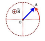 Thanh kim loại OA dài 1m quay đều trong mặt phẳng hình vẽ xung quanh trục quay đi qua điểm O, thanh OA cắt các đường sức từ của một từ trường đều B = 0,04 T. Cho biết thời gian quay một vòng hết là 0,5 s. Véctơ cảm ứng có phương song song với trục quay. Suất điện động cảm ứng xuất hiện trong thanh OA có độ lớn gần giá trị nào nhất sau đây?