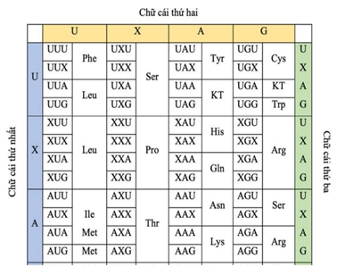 Biết bảng mã di truyền như sau : (Nguồn: Sách giáo khoa lớp 12)