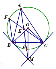 Cho tam giác nhọn \(ABC\) \(\left( {AB < AC} \right)\)nội tiếp đường tròn tâm \(O.\) Hai tiếp tuyến tại \(B\)và \(C\) của đường tròn \((O)\) cắt nhau tại \(M\), tia \(AM\) cắt đường tròn \((O)\) tại điểm \(D.\)