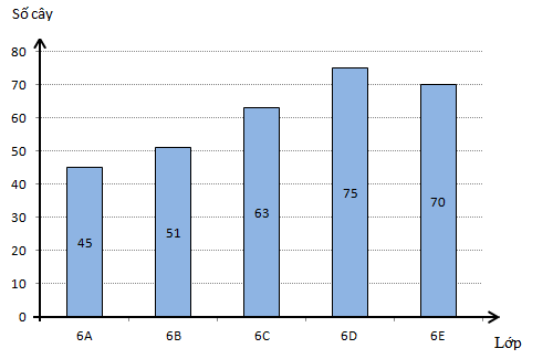 Cho biểu đồ về số cây của khối lớp 6 ở một trường THCS đã trồng trong năm học. Quan sát