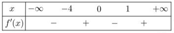 Cho hàm số \(f\left( x \right)\) có đạo hàm \(f'\left( x \right) = x\left( {x - 1} \right){\left( {x + 4} \right)^3},\,\,\forall x \in \mathbb{R}\). Số điểm cực đại của hàm số đã cho là