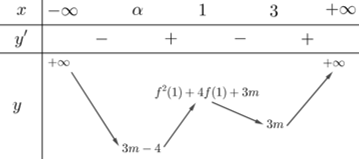 Cho hàm số \(y = f\left( x \right)\) là hàm đa thức bậc 3 có đồ thị như hình bên. Gọi \(S\) là tập hợp tất cả các giá trị nguyên của tham số \(m \in \left[ { - 100;100} \right]\) để hàm số \(h\left( x \right) = \left| {{f^2}\left( x \right) + 4f\left( x \right) + 3m} \right|\) có đúng 3 điểm cực trị. Tổng các phần tử của \(S\) bằng