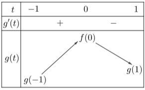 - Giải bất phương trình \(m > g\left( t \right)\,\,\forall t \in \left[ { - 1;1} \right] \Leftrightarrow m > \mathop {\max }\limits_{\left[ { - 1;1} \right]} g\left( t \right)\).