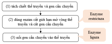 - Tạo ADN tái tổ hợp theo 3 bước là: