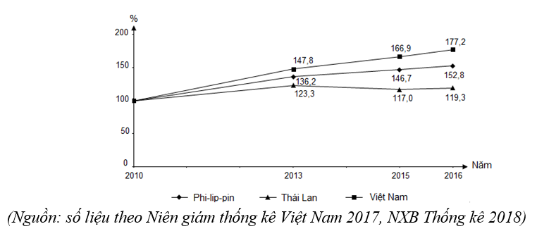 Cho biểu đồ: GDP của Thái Lan, Phi-lip-pin, Việt Nam qua các nămBiểu đồ trên thể hiện nội dung