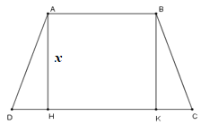 Một người nông dân có 3 tấm lưới thép B40, mỗi tấm dài 16m và muốn rào một mảnh vườn dọc bờ sông dạng hình thang cân ABCDnhư hình vẽ, trong đó bờ sông là đường thẳng DC không phải rào và mỗi tấm là một cạnh của hình thang. Hỏi ông ấy có thể rào một mảnh vườn với diện tích lớn nhất bao nhiêu \({m^2}\)?