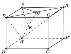 Kẻ \(AH \bot BD,\,AK \bot A'H\). Khi đó \(d\left( {A,\left( {BDA'} \right)} \right) = AK\)