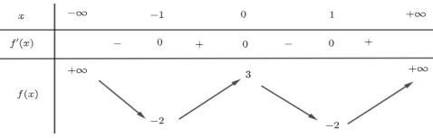 Cho hàm số \(y = f\left( x \right)\) là hàm số đa thức bậc bốn và có bảng biến thiên như hình