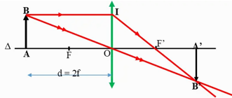 Vật sáng AB = 2cm đặt vuông góc với trục chính của thấu kính hội tụ có tiêu cự f = 20cm, A trên trục chính, cách thấu kính một khoảng 30cm.