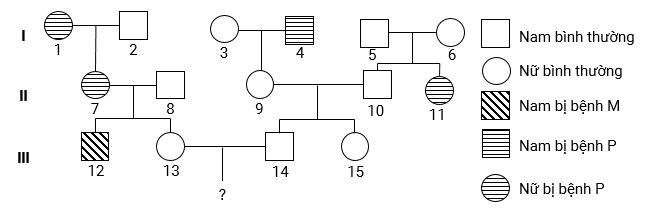Phả hệ dưới đây mô tả sự di truyền hai bệnh ở người: bệnh M và bệnh P.