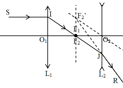 Cho hệ quang học như hình vẽ. Vẽ và trình bày cách vẽ đường đi tiếp theo của tia sáng