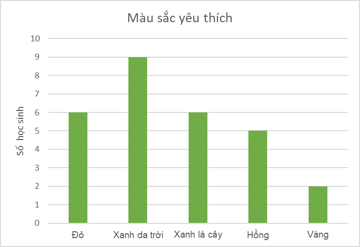 Cho biểu đồ màu sắc yêu thích của các học sinh lớp 4A:
