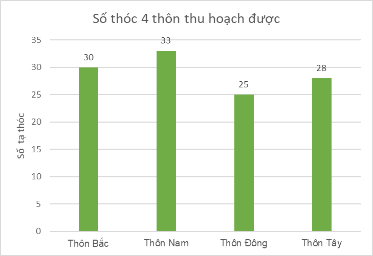 Cả 4 thôn thu hoạch được bao nhiêu tạ thóc?