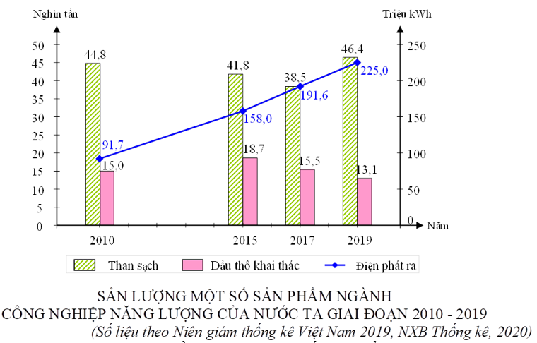 Theo biểu đồ, nhận xét nào sau đây đúng về sản lượng một số sản phẩm ngành công nghiệp năng lượng của nước ta giai đoạn 2010 - 2018?