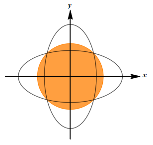 Hướng tới kỉ niệm ngày thành lập trường Đoàn TNCS Hồ Chí Minh. Khối \(12\) thiết kế bồn hoa gồm hai Elip bằng nhau có độ dài trục lớn bằng \(8m\) và độ dài trục nhỏ bằng \(4m\) đặt chồng lên nhau sao cho trục lớn của Elip này trùng với trục nhỏ của Elip kia và ngược lại (như hình vẽ).