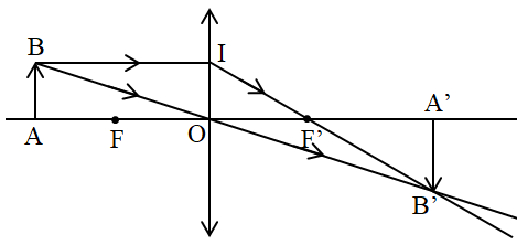 Vật sáng AB qua thấu kính hội tụ tiêu cự f cho ảnh thật A’B’. Gọi giao điểm của thấu kính với trục chính là quang tâm O của thấu kính.