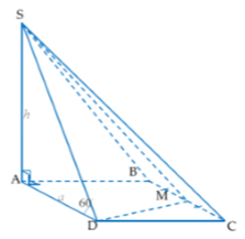 Cho hình chóp S.ABCD có đáy ABCD là hình vuông cạnh a và SA vuông góc đáy ABCD và mặt bên (SCD) hợp với đáy một góc \({60^0},\) M là trung điểm của BC. Tính thể tích hình chóp S.ABMD.