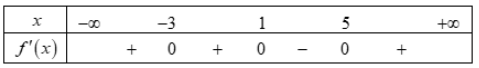 Cho hàm số đa thức \(f\left( x \right)\), bảng xét dấu của \(f'\left( x \right)\) như sau: