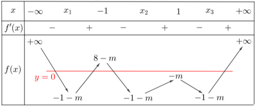 Dựng bảng biến thiên của \(h\left( x \right)\) từ đó tìm điều kiện của \(m\) để hàm số \(g\left( x \right)\) có 9 điểm cực trị.