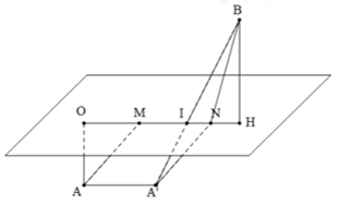 - Gọi hình chiếu vuông góc của \(B\) lên \(\left( P \right)\) là \(H\left( {2; - 3;0} \right)\), hình chiếu vuông góc của \(A\) lên \(\left( P \right)\) là \(O\).