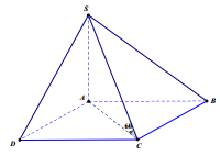 Cho hình chóp S.ABCD có đáy ABCD là hình chữ nhật, SA vuông góc đáy, AB = 3a, AD = 4a, góc giữa SC