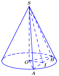 - Gọi O là bán kính đáy hình nón, I là trung điểm của AB.