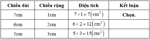 Trong các hình chữ nhật có chu vi 16 cm, hãy tìm chiều dài, chiều rộng của hình chữ nhật có