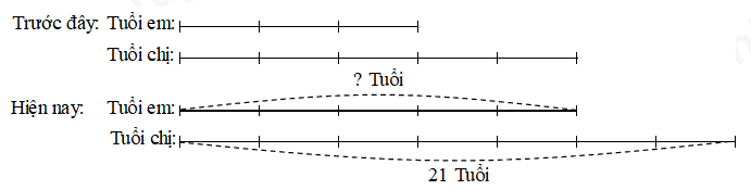 Năm nay chị \(21\) tuổi. Trước đây khi tuổi chị bằng tuổi em hiện nay thì tuổi em bằng