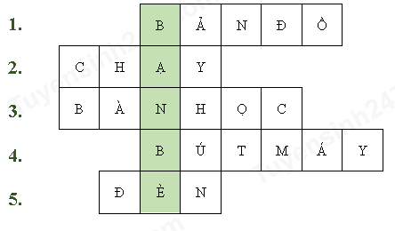 Giải ô chữ sau bằng cách trả lời các câu đố.