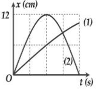 Hai con lắc lò xo có cùng khối lượng vật nặng là 100g, có tổng độ cứng của hai lò xo là 150N/m. Kích thích cho hai con lắc dao động điều hòa theo phương nằm ngang. Hình vẽ bên là một phần đồ thị biểu diễn sự phụ thuộc vào thời gian của li độ các con lắc. Tốc độ dao động cực đại của vật nặng trong con lắc (1) gần giá trị nào nhất sau đây?