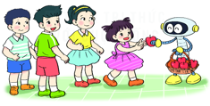 Rô-bốt có 5 quả táo, Rô-bốt tặng táo cho cả 4 bạn.