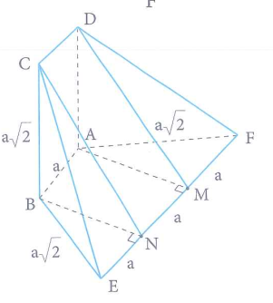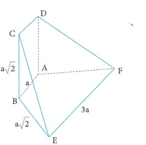 Cho hình chữ nhật \(ABCD\) và hình thang cân \(ABEF\) nằm trong hai mặt phẳng vuông góc với nhau. Biết \(AB = a;\)\(BC = BE = a\sqrt 2 \), \(AB//EF\) và \(EF = 3a\)(tham khảo hình vẽ), thể tích khối đa diện \(ABCDEF\)bằng