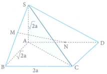 Cho hình chóp \(S.ABCD\) có đáy \(ABCD\) là hình chữ nhật \(AB = \sqrt 2 a,\,AD = 2a\), \(SA\) vuông góc