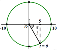 Một chất điểm dao động điều hòa với tần số \(f = 1Hz\). Tại thời điểm ban đầu vật đi qua vị trí có li độ \(x = 5cm\), với tốc độ \(10\pi \sqrt 3 cm/s\) theo chiều dương. Phương trình dao động của vật là
