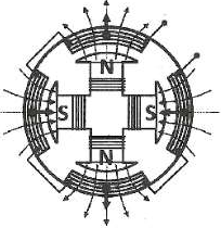Một máy phát điện xoay chiều một pha có cấu tạo như hình vẽ bên. Biết từ thông cực đại