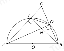 Trên nửa đường tròn đường kính \(AB\), lấy hai điểm \(I,Q\) sao cho \(I\) thuộc cung nhỏ \(AQ.\) Gọi \(C\) là giao điểm hai tia \(AI\) và \(BQ\); \(H\) là giao điểm của hai dây \(AQ\) và \(BI\).