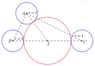 Trong không gian \(Oxyz\), cho các mặt cầu \(\left( {{S_1}} \right);\left( {{S_2}} \right);\left( {{S_3}} \right)\) có cùng bán kính \(r = 1\) và lần lươt có các tâm là các điểm \(A\left( {0;3; - 1} \right)\,;\,\,B\left( { - 2;1; - 1} \right)\,;\,\,C\left( {4; - 1; - 1} \right)\). Gọi \(\left( S \right)\) là mặt cầu tiếp xúc với cả 3 mặt cầu trên. Mặt cầu \(\left( S \right)\) có bán kính nhỏ nhất bằng?