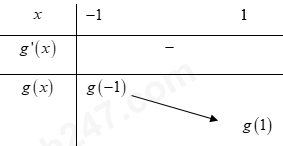 - Đặt \(g\left( x \right) = f\left( x \right) - 3x,{\rm{ }}x \in \left( { - 1;1} \right).\) Lập BBT hàm số g(x).