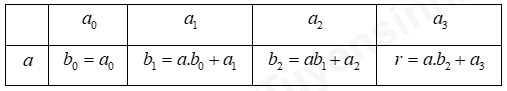 Nếu đa thức bị chia là \({a_0}{x^3} + {a_1}{x^2} + {a_2}x + {a_3}\), đa thức chia là \(\left( {x - a} \right)\) được thương là \({b_0}{x^2} + {b_1}x + {b_2}\) và dư là \(r\), ta có thể xác định thương, dư như sau:
