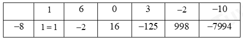 b) \({x^5} + 6{x^4} + 3{x^2} - 2x - 10\) cho \(x + 8\)
