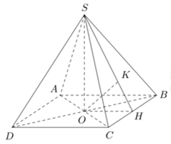 - Gọi \(H\) là trung điểm của \(CD\). Khi đó \(\left( {\left( {SCD} \right),\left( {ABCD} \right)} \right) = \angle SHO\).