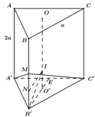 Cho hình lăng trụ tam giác đều \(ABC.A'B'C'\) có \(A'A = 2a,\,\,BC = a\). Gọi \(M\) là trung điểm của